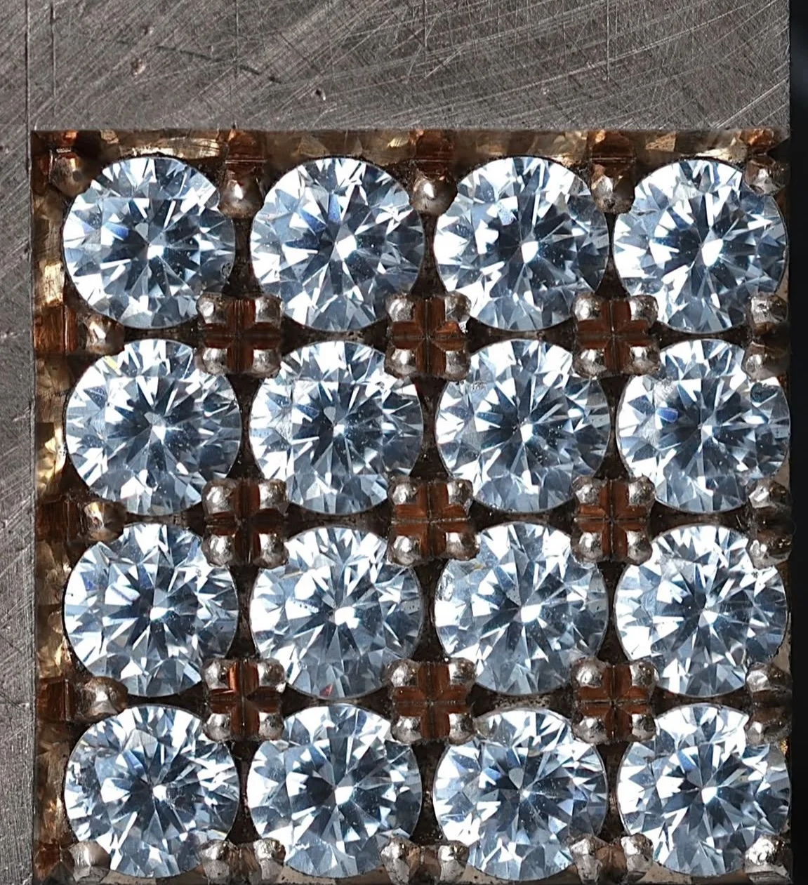All practice is done on specialized training blanks designed specifically for stone setting.